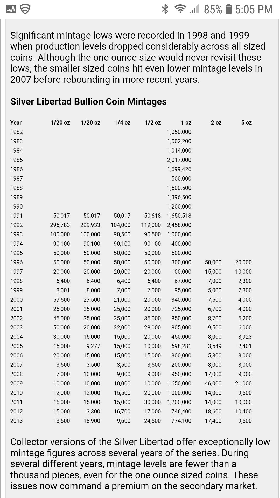 Silver Libertad Key Dates & Mintage questions Coin Talk